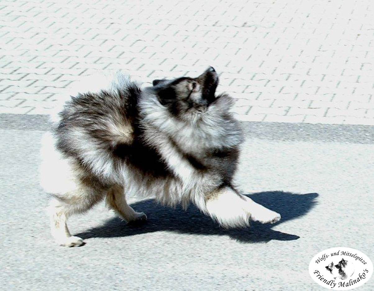 DKCH Friendly Malinako's ANGEL genannt Engelchen, geb. 3.7.2001 blieb aus unserem ersten Wurf bei uns. Sie gehört unserer Tochter Livia, die mit ihr Agility, Dogdancing und gelegentlich Show-Handling macht.