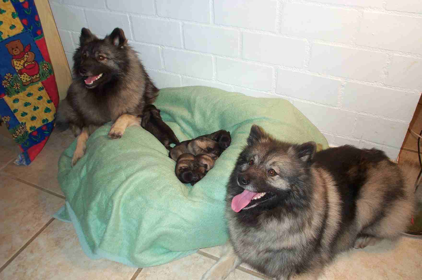 20.5.2003: Angel ist das erste Mal Mama. 4 Rüden und 1 Hündin. Papa ist Cool Theo zum Alten Feuerwehrturm.